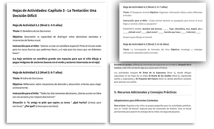 “Como padre sin formación pedagógica, estaba perdido. Estas guías me salvaron. Mi hijo de 5 años ahora cita versículos de memoria.”